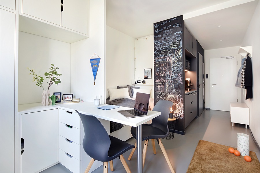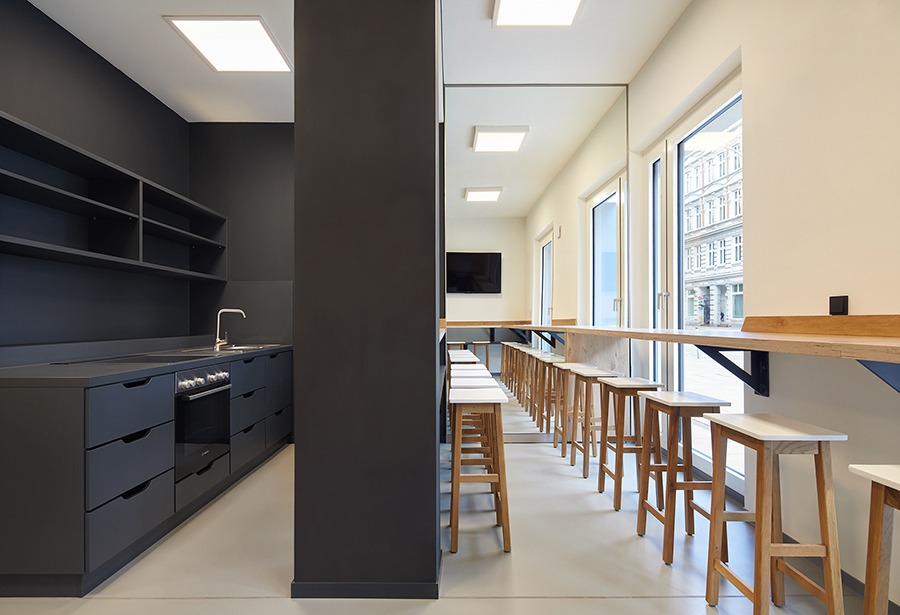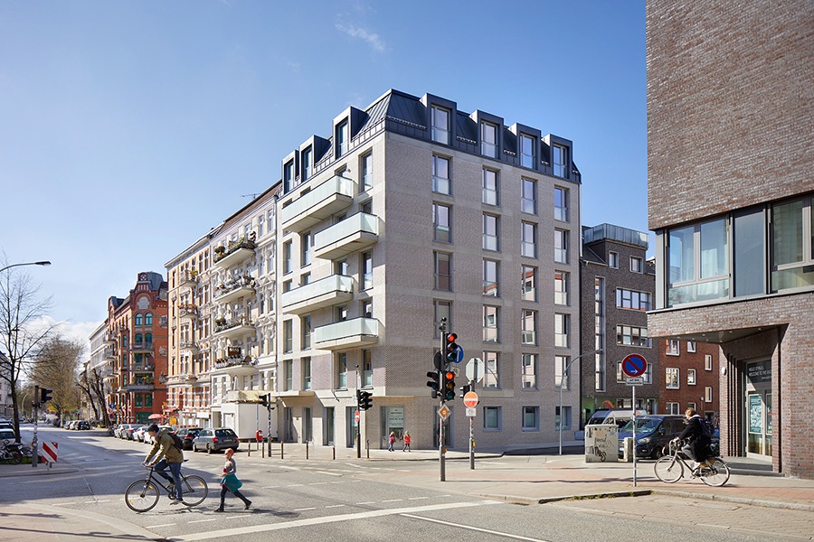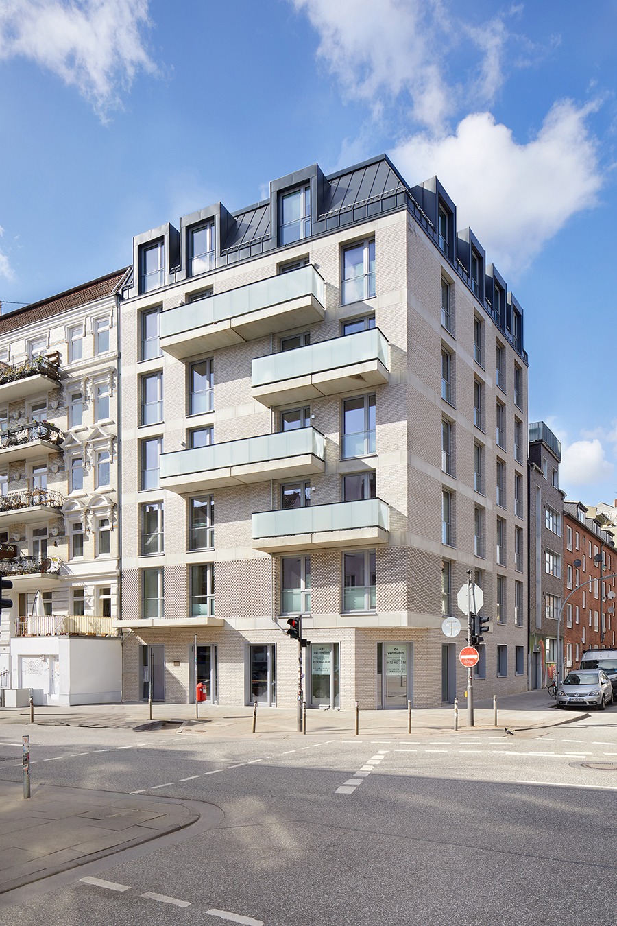Neubau eines Wohnhauses für Studierende und Auszubildende mit insgesamt 36 Apartements. Geplant und ausgeführt vom Hamburger Architekturbüro Thüs Farnschläder Architekten.