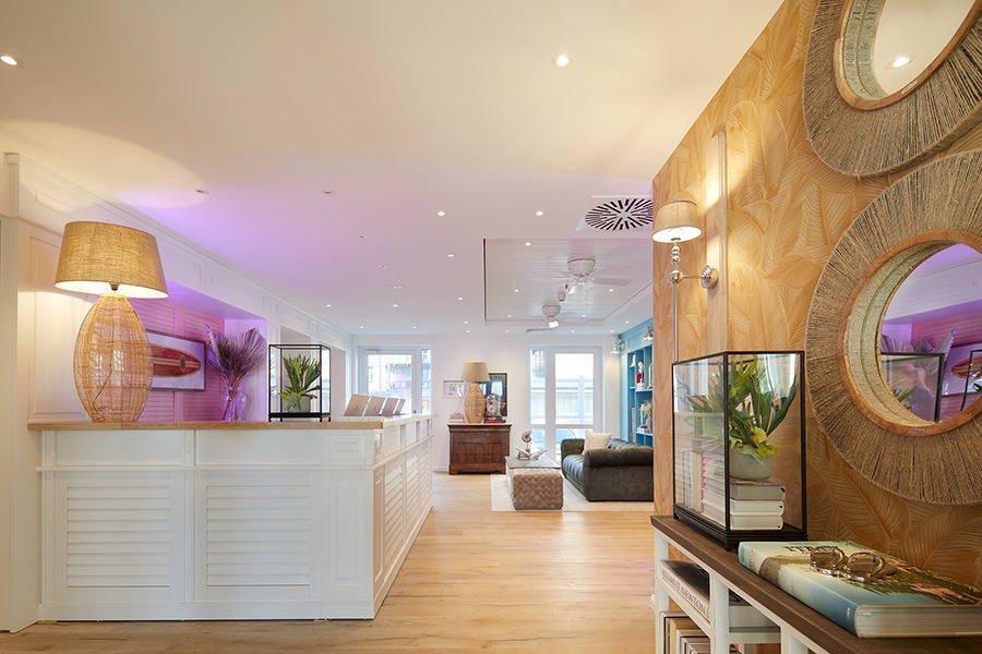 Die Gebäudekomplexe liegen direkt hinter dem Deich an der Perlebucht und bieten den Gästen neben den modernen und komfortablem Apartments und Suiten eine angeschlossene Gastrowelt, sowie Wellnessmöglichkeiten zum Entspannen.