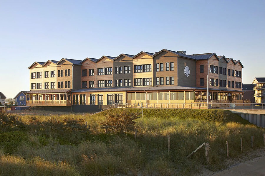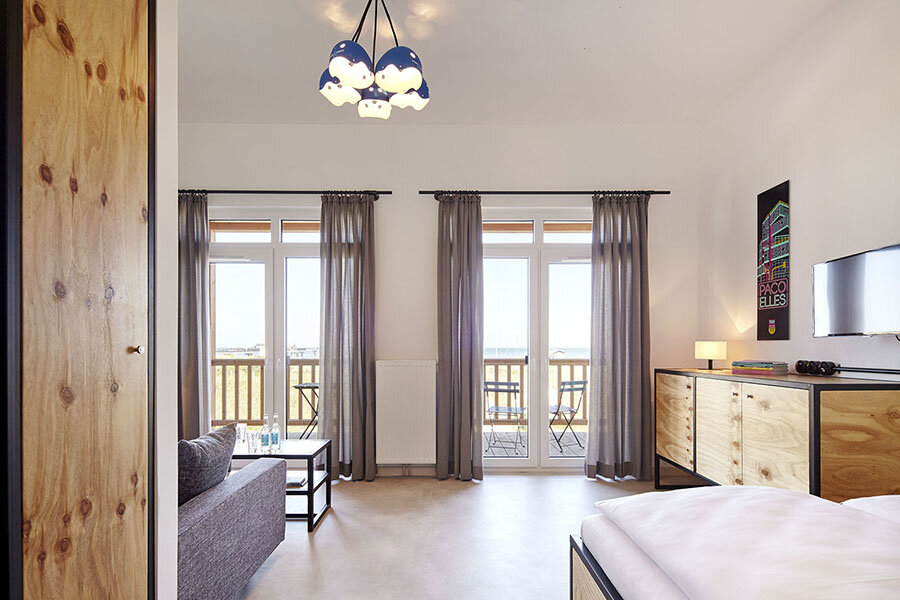 Mit der Bretterbude wurde Deutschlands erstes Themenhotel für Surfer und Skater eröffnet. Direkt an der Ostsee gelegen, unmittelbar an Strandpromenade und Seebrücke, verbindet das Hotel modernes Design mit maritimem Lifestyle. Das Projekt wurde von Ladehoff Architekten, Thomas Ladehoff geplant und umgesetzt. Im Mittelpunkt standen eine funktionale Architektur, kompakte Grundrisse und die Einbindung in das bestehende Küstenumfeld. Das Hotel umfasst 81 individuell gestaltete Zimmer („Butzen“) in verschiedenen Größen. Die Gestaltung greift Elemente der Surf- und Skatekultur auf und schafft so eine unverwechselbare Atmosphäre. Bauherr des Projekts ist die Heimathafen® Hotels Gruppe, die für innovative Hotelkonzepte an der deutschen Küste steht.