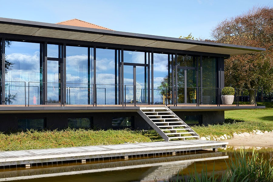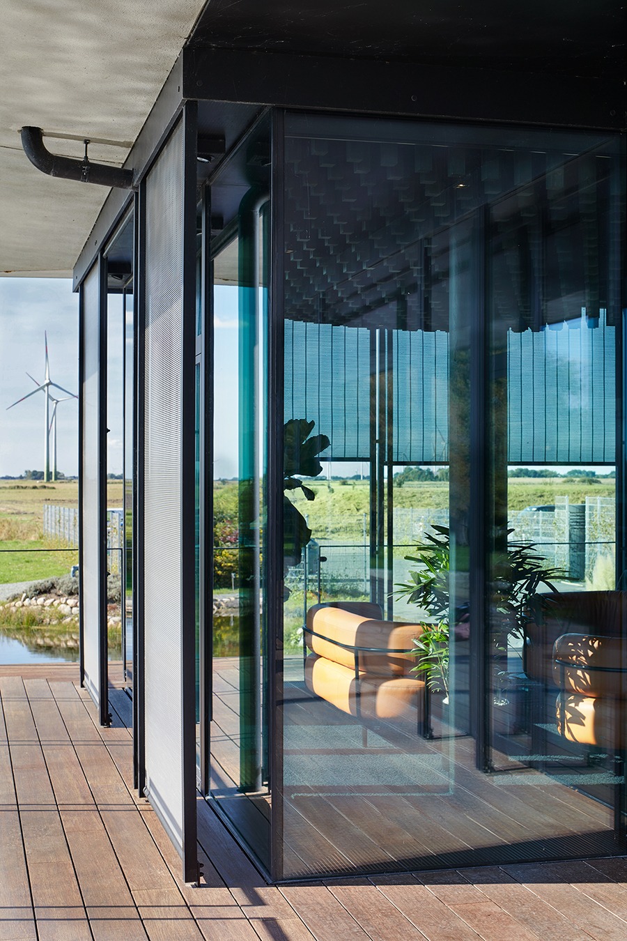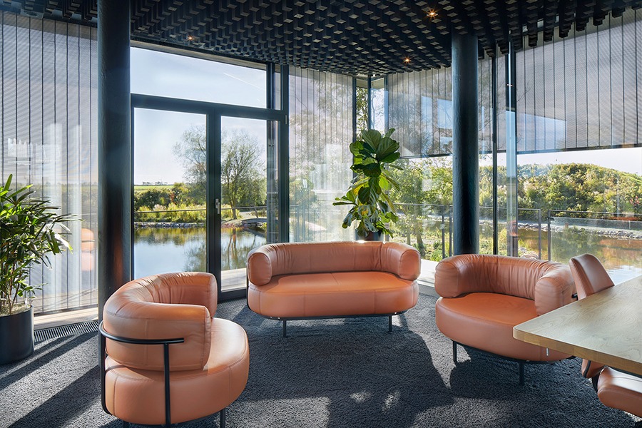 Der anspruchsvolle Büroneubau in ländlichem Umfeld überzeugt durch eine klare architektonische Sprache und hochwertige Details – darunter die Metallbehänge von MHZ. Entworfen von Büro Messner Architektur aus Flensburg, fügt sich das Gebäude sensibel in die weite nordfriesische Landschaft ein und schafft zugleich eine moderne Arbeitswelt.