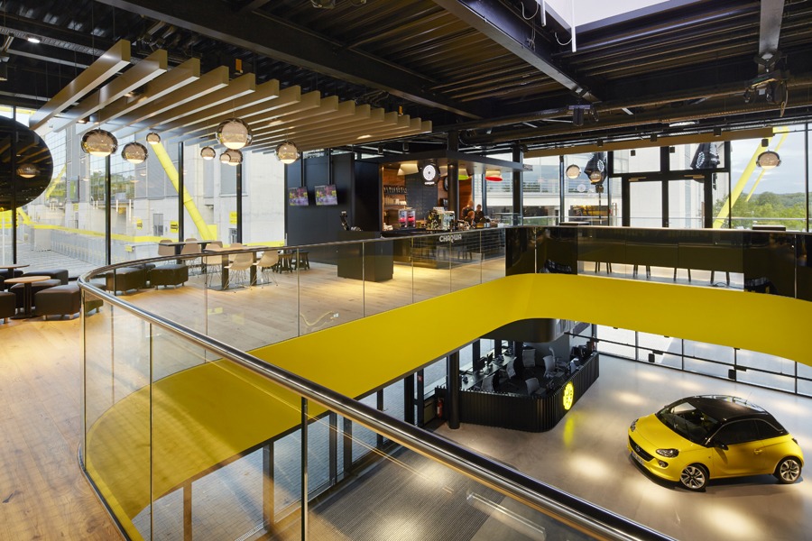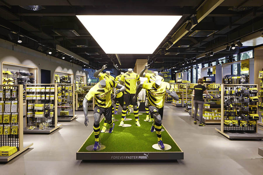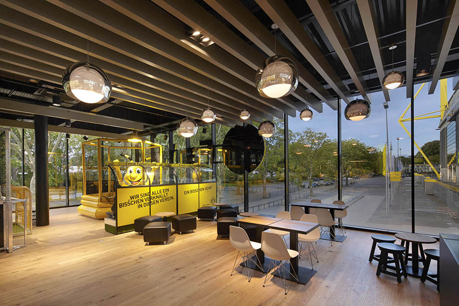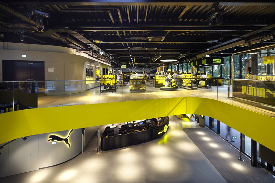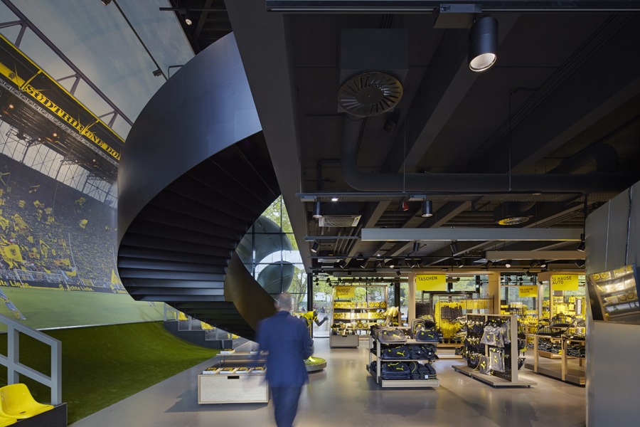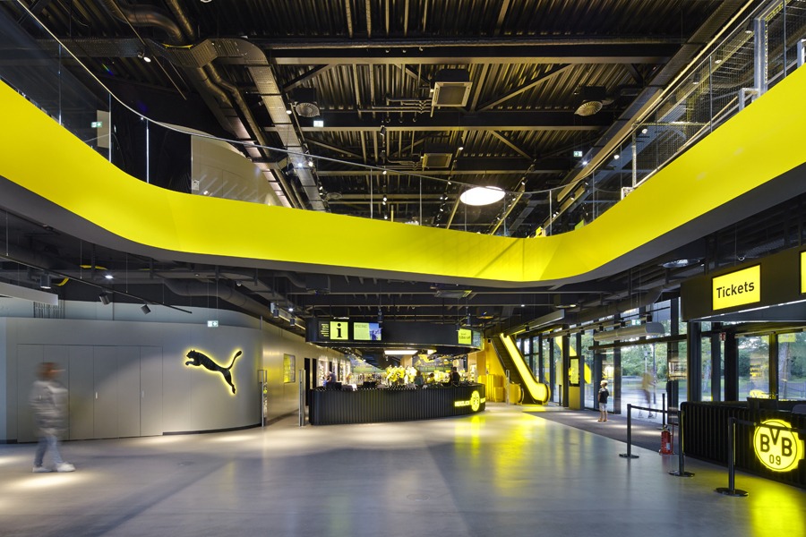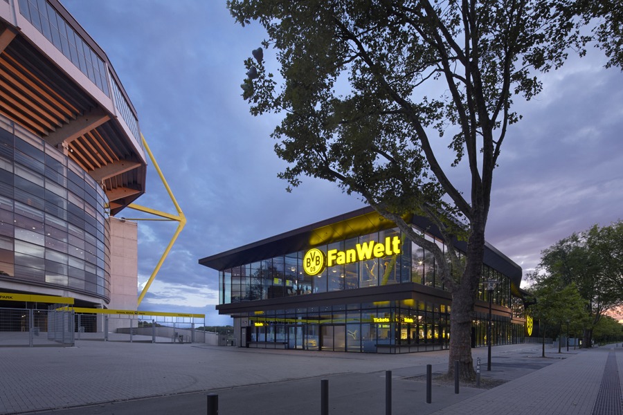 Die BVB-FanWelt an der Nordwestseite des SIGNAL IDUNA PARK ist das zentrale Erlebnis- und Servicezentrum von Borussia Dortmund. Das Gebäude wurde von msm Meyer Schmitz-Morkramer Architekten, Köln, entworfen und in Zusammenarbeit mit D.S.D.5 Department Store Design realisiert. Bauherr ist die BVB Merchandising GmbH. Die Gestaltung folgt einem klaren Industrial-Look mit sichtbaren Konstruktionselementen, Stahlmöbeln und einer kontrastreichen Farbgebung in den Vereinsfarben Schwarz und Gelb. Im Obergeschoss steht die „Gelbe Wand“, eine originalgetreue Inszenierung der berühmten Südtribüne mit Stadionstühlen, Kunstrasen und Fotowänden.