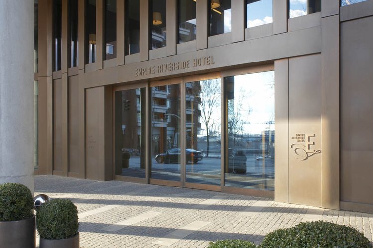 Das Empire Riverside Hotel Hamburg ist ein architektonisches Meisterwerk im Herzen von St. Pauli, direkt an der Elbe. Entworfen wurde das Hotel von dem britischen Architekten David Chipperfield und seinem Team. Die markante Fassade aus bronzeverkleideten Aluminiumplatten verleiht dem Gebäude eine elegante Präsenz und fügt sich harmonisch in die Umgebung ein.