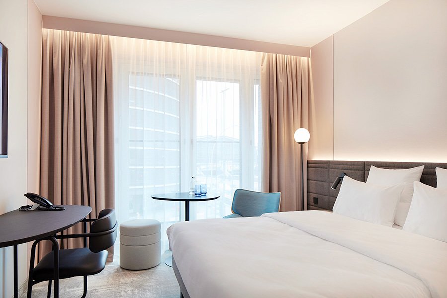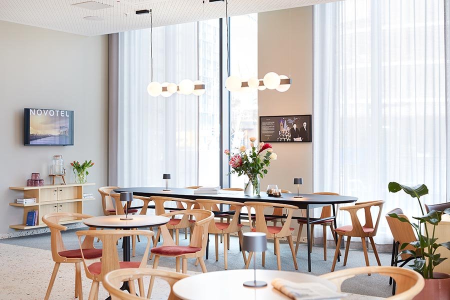 Die französische Hospitality-Gruppe Accor hat das Novotel Hamburg Central Station in unmittelbarer Nähe zum Hauptbahnhof und der Mönckebergstraße 2024 eröffnet. Mit seiner zentralen Lage und der Anbindung richtet sich das Hotel an Städtereisende, Familien und Business-Gäste. Zum Angebot gehören 227 Zimmer und Suiten, ein zentraler offener Bereich mit Lobby, Co-Working- und Relax-Flächen, dem schwedisch-inspirierten Restaurant MYSA Eatery sowie der dazugehörigen Bar und Loungebereich.Geschäftsreisende, Event- und Tagungsgäste können fünf multifunktionalen Veranstaltungsräume, die mit modernster Technik nutzen.Von außen wurde der Neubau in klaren Linien und dem typischen Hamburger Backstein gestaltet, große bodentiefe Fenster lassen viel Licht ins Innere des Hotels. Arnold / Werner https://arnoldwerner.com/ übernahm die Gestaltung und innenarchitektonische Umsetzung der 227 Zimmer und Suiten sowie des Erdgeschosses mit Lobby, Bar, Restaurant und Tagungsbereich. Der Entwurf der Gästezimmer basiert auf einem Leitfaden des Designduos Sundukovy Sisters. Für die Architektur des Johann Kontor zeichnen KPW Papay Warncke und Partner verantwortlich, die bei einem internationalen Wettbewerb als Sieger hervorgingen.