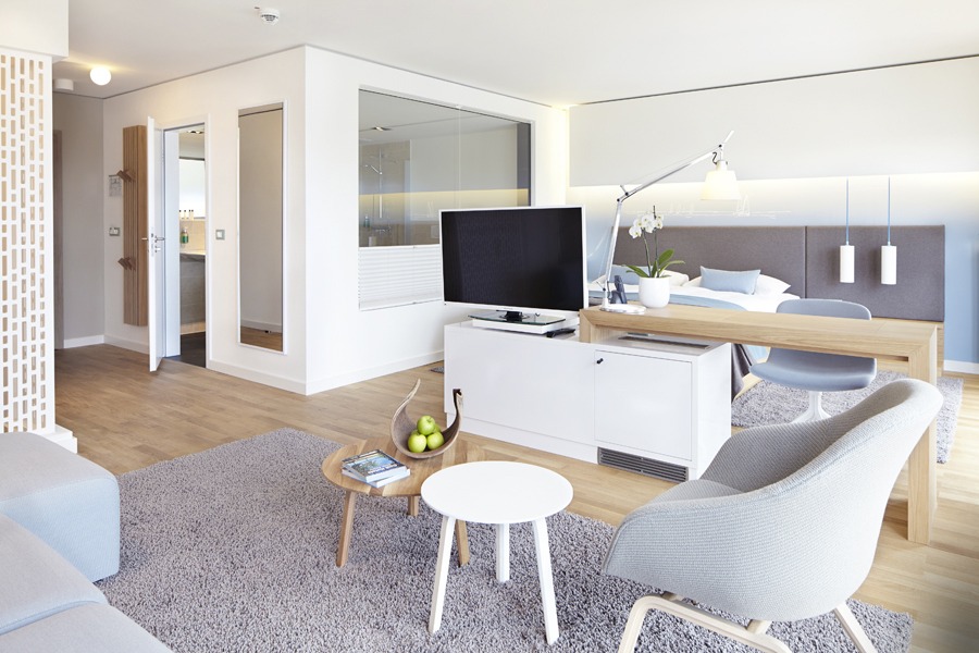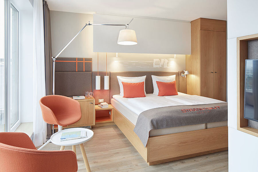 Das Strandgut Resort in Sankt Peter-Ording ist ein exklusives Hotel an der Nordsee, das Architektur und Innenarchitektur in eine schöne Balance zwischen Modernität und Naturnähe bringt. Der skandinavische Minimalismus prägt das Design mit natürlichen Materialien wie Holz und Schiefer sowie einer ruhigen Farbpalette. Schlichte Formen und funktionale Elemente verbinden sich mit organischen Texturen und schaffen eine einladende Atmosphäre.